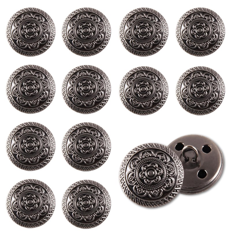 MytaYt Pack of 12 23 mm Metal Blazer Buttons Black Mixed Vintage Styles Flower Round Buttons Metal Buttons for Blazer, Jacket, Suits, Coat, Uniform