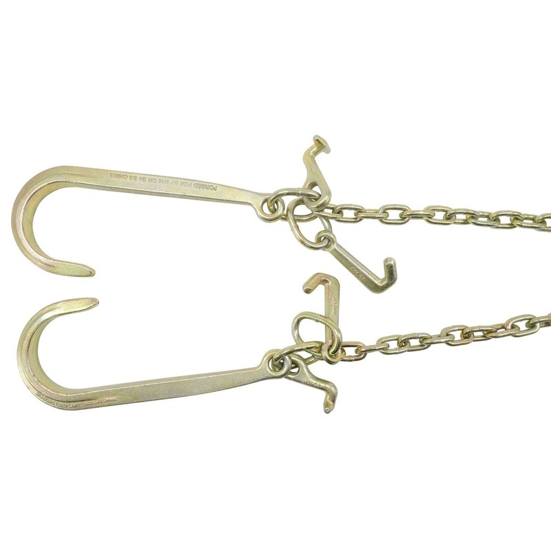 - 1 Pcs -5/16" G70 V-Chain Bridle w/ 15" Large J Hooks, T- Hook & J-Hook w/ Grab Hooks 3' Legs