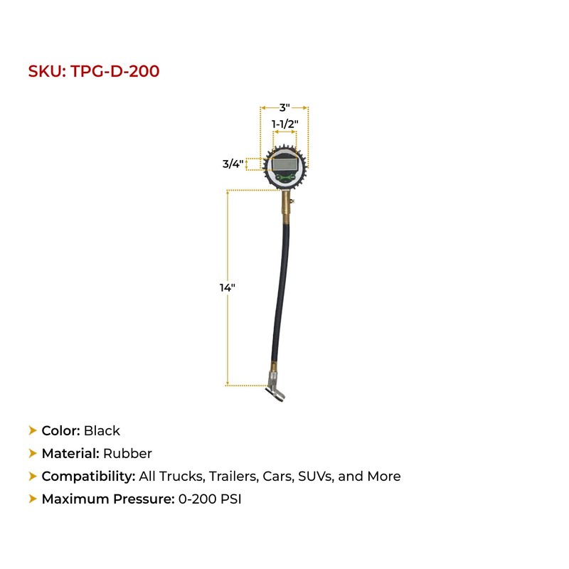 - Pressure Range: Our digital air pressure gauge measures 0 to 200 PSI pressure ratings. It can measure and maintain the tire pressure of cars, trucks, trailers, motorcycles, SUVs, and RVs.