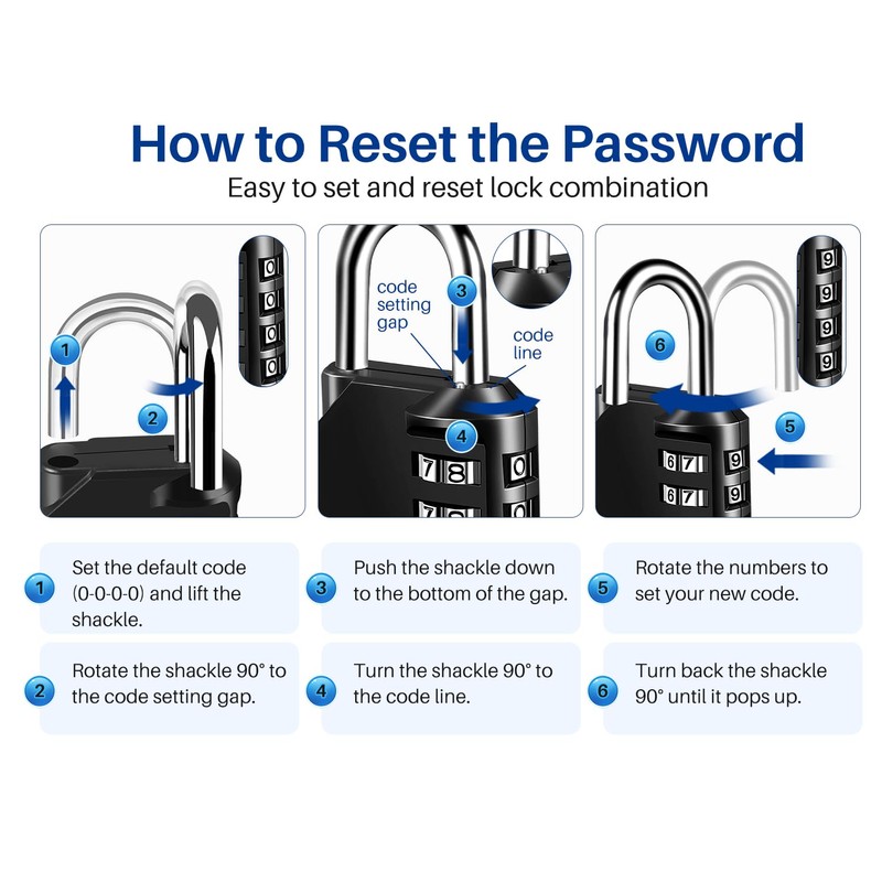 - Restablecimiento sencillo: el diseño de combinación numérica del candado Mythco facilita la configuración y el restablecimiento de su propia combinación preferida, lo que significa que puede cambiar su código en cualquier momento y adaptarlo a sus necesidades.