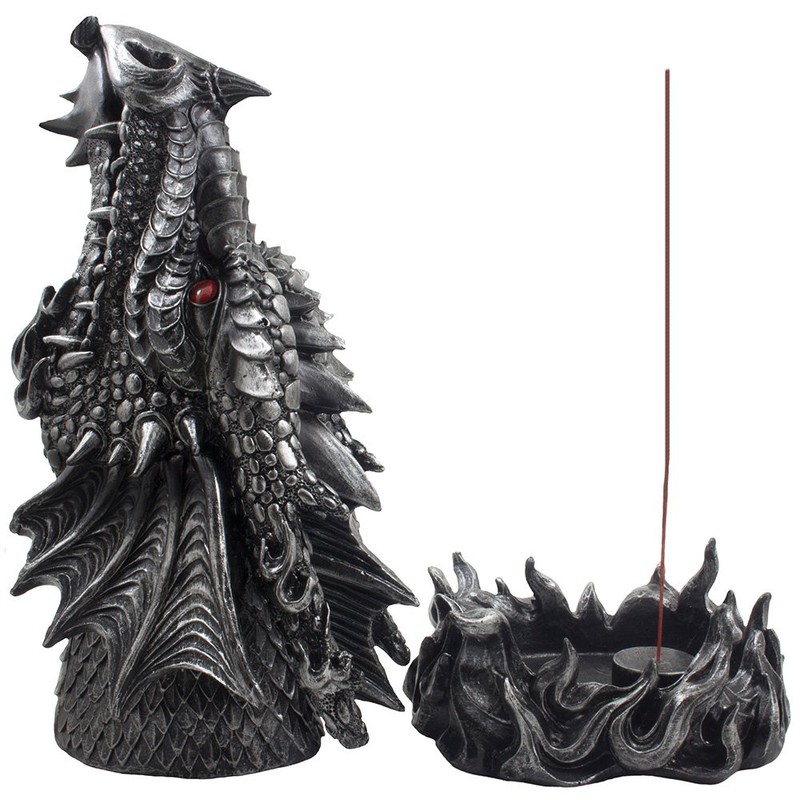 • This fire breathing dragon holds a secret! Lift the top of this mythical dragon's finely detailed metallic look head to reveal an incense holder that will help you fill the room with your favorite magical aroma. - See full description below.