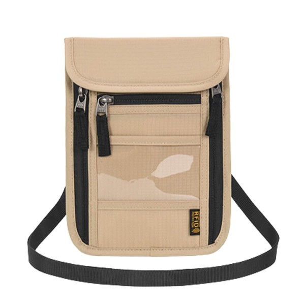 Mythya Carteras para Pasaporte, Cartera de Cuello con Bloqueo RFID, Bolsa de Viaje Multifunción con Cuello para Pasaporte (Beige)