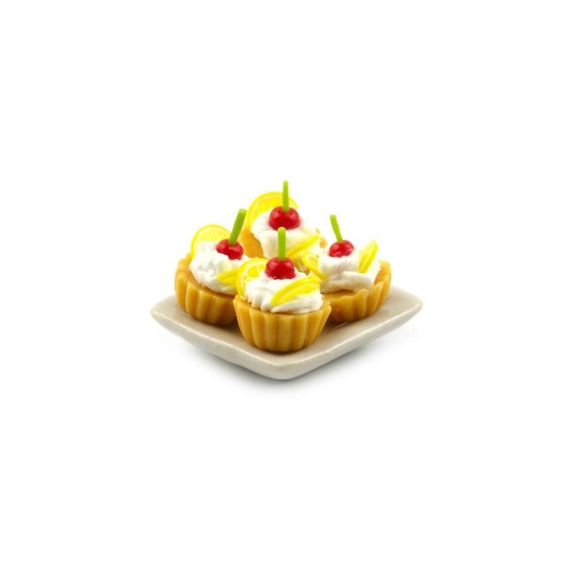 MyTinyWorld 4 Dolls House Lemon and Cherry Tarts on a 19mm Square Plate