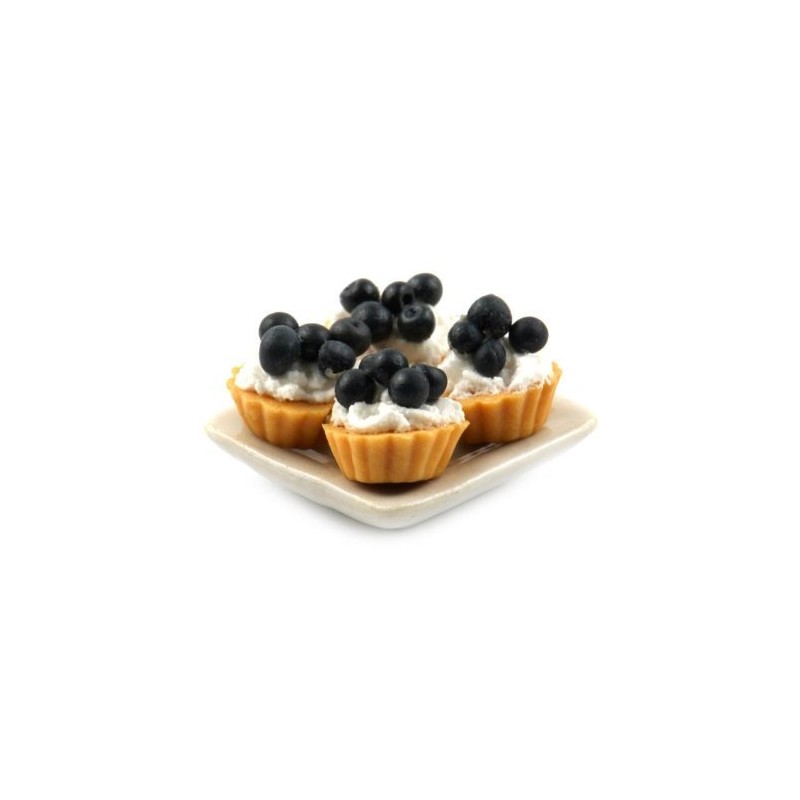 MyTinyWorld 4 Dolls House Miniature Black Cherry Tarts on a 19mm Square Plate