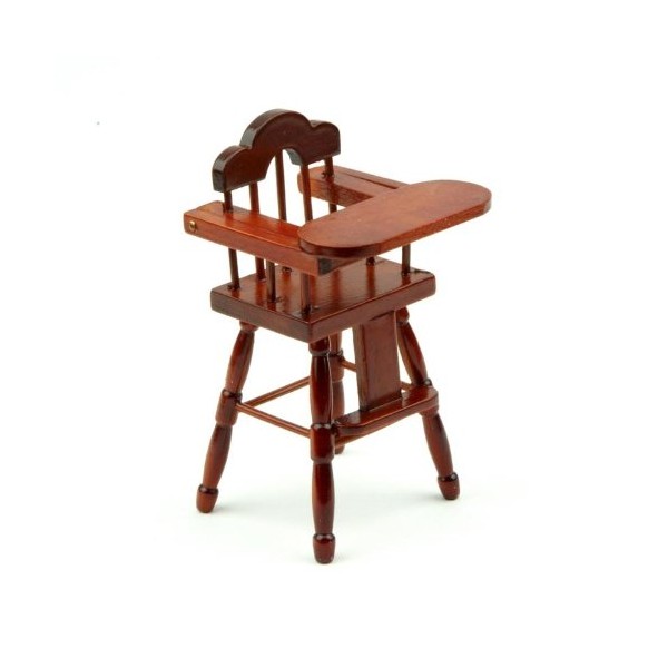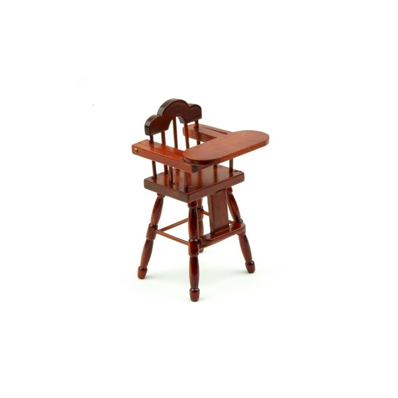 MyTinyWorld Dolls House Miniature Childrens Mahogany High Chair