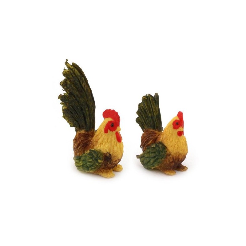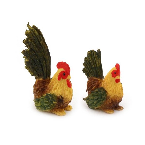 MyTinyWorld Dolls House Miniature Green And Brown Hen And Cockerel Set