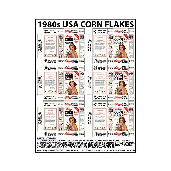 MyTinyWorld Dolls House Miniature Packaging Sheet of 6 1980s USA Corn Flakes