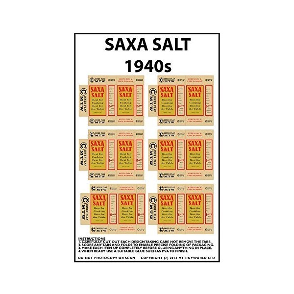 MyTinyWorld Dolls House Miniature Packaging Sheet of 6 Saxa Salt 1940s