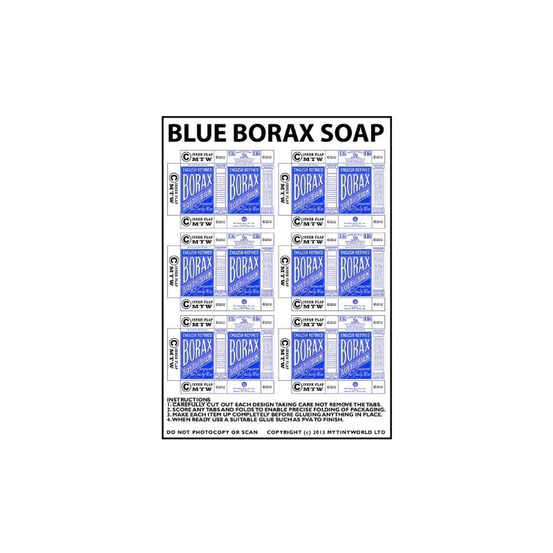 MyTinyWorld Dolls House Miniature Sheet of 6 Blue Borax Soap Powder Boxes