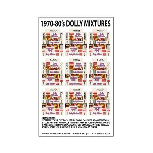 MyTinyWorld Dolls House Miniature Sheet of 9 Dolly Mixture Boxes From the 70s/80s