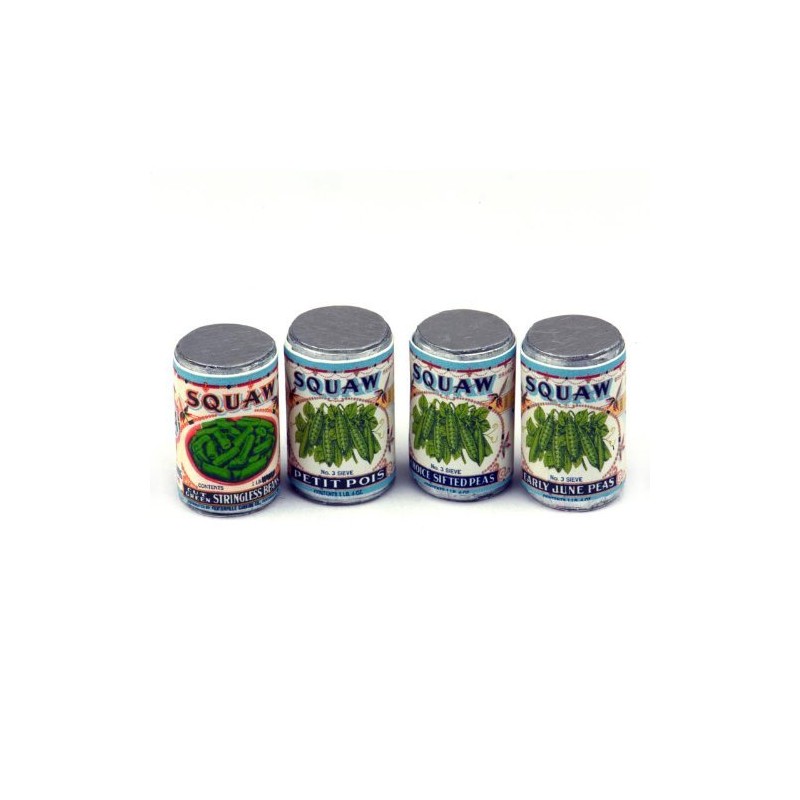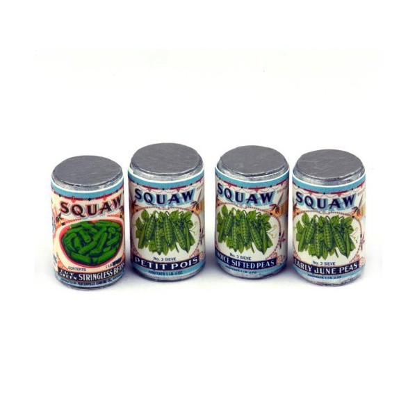MyTinyWorld Set Of 4 Assorted Dolls House Miniature Squaw Brand Cans (1920s)