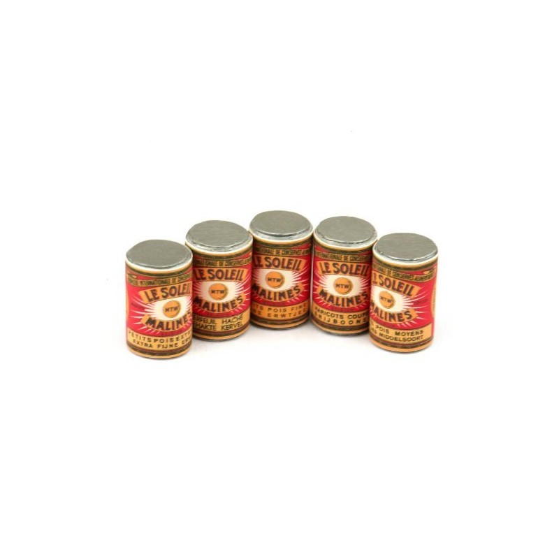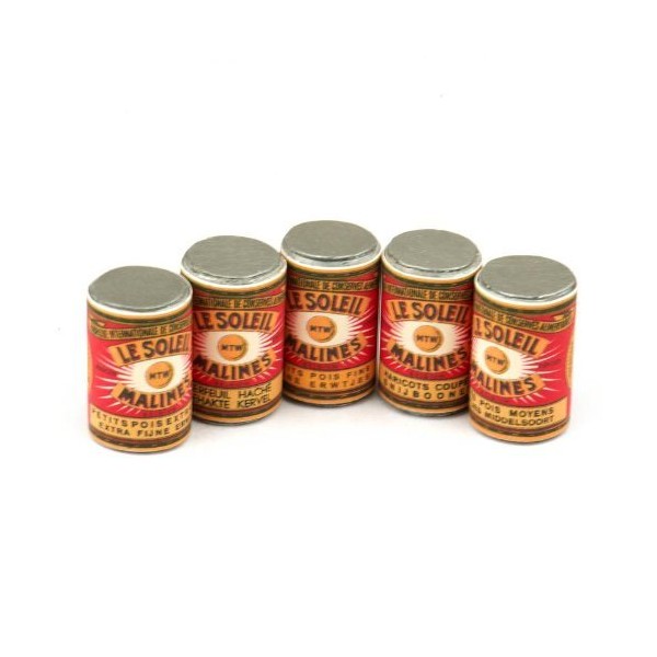 MyTinyWorld Set Of 5 Assorted Dolls House Miniature Le Soleil Cans (1890s)