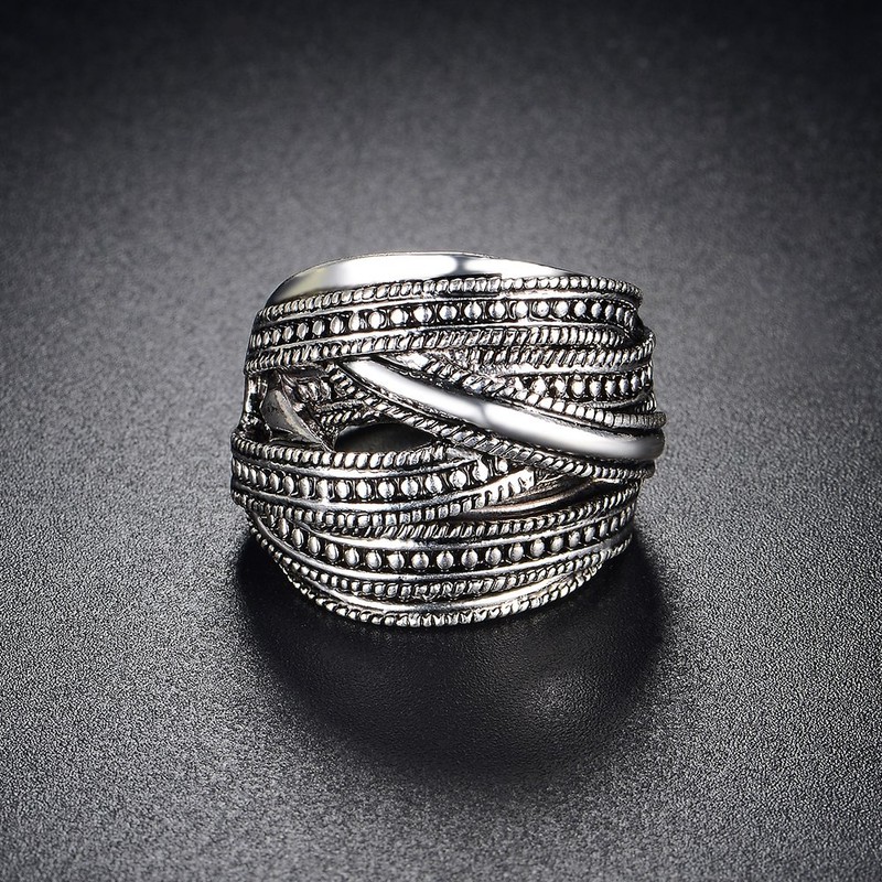 Mytys Retro Silver Cable Band Ring 2 Tone Crisscross Intertwined Chunky Cocktail Rings Unisex Couple Wide Statement Ring Size 6