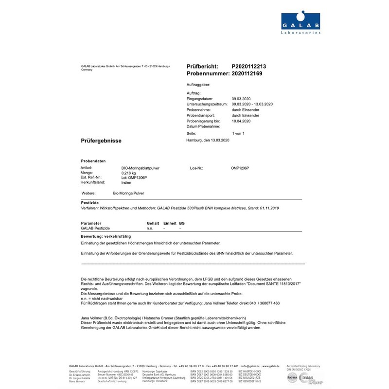 - Best quality and plastic-free and 100% vegan – we do not use any plastic and only use packaging made of plastic-free material. Our organic moringa powder is laboratory tested by the manufacturer, free from unwanted additives and manufactured under the strictest quality controls. Free from flavours, dyes, preservatives and of course GMO-free.