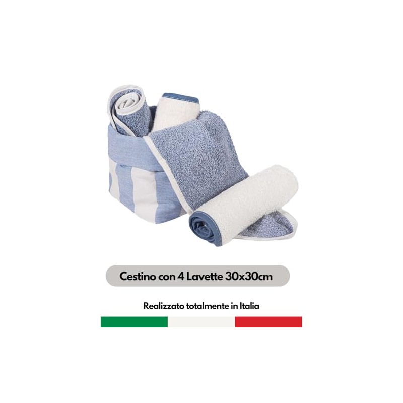 - Elegant and refined terry cloth set that adds a touch of craftsmanship and provides a pleasant furnishing solution for your bathroom. The towel set consists of 1 laundry basket and 4 washcloths 30 x 30 cm