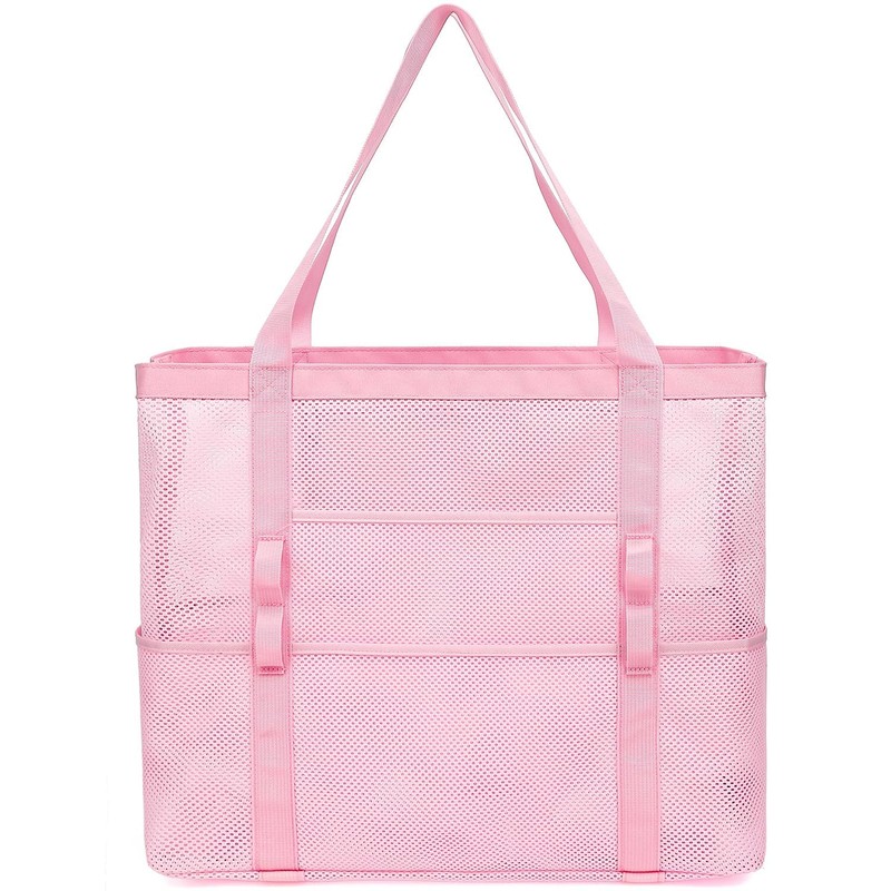MZinge Mesh Beach Bag with 9 Pockets - Large Lightweight Waterproof Tote for Family,Toys &Vacation Essentials (pink)
