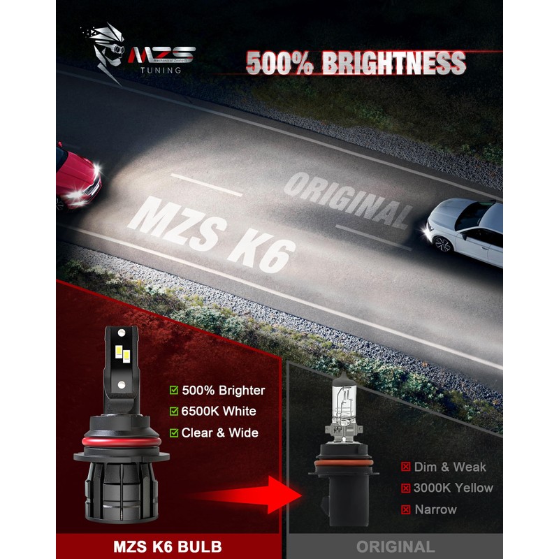 - 【500% Brightness】-MZS 9007 hb5 bulbs adopt 24 upgrade chips, 6500K light allows you to see farther and wider during night driving, which is 5 times brighter than the original light bulbs