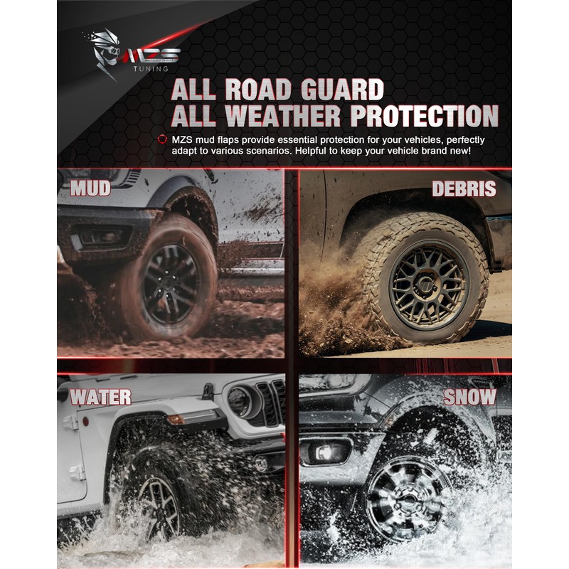 - Ultimate Protection: MZS splash guard is larger and thicker, provide more tire coverage, effectively block snow, mud, dust, slush, gravel, sand and debris, prevent scratches or damage to the vehicle body and keep it clean
