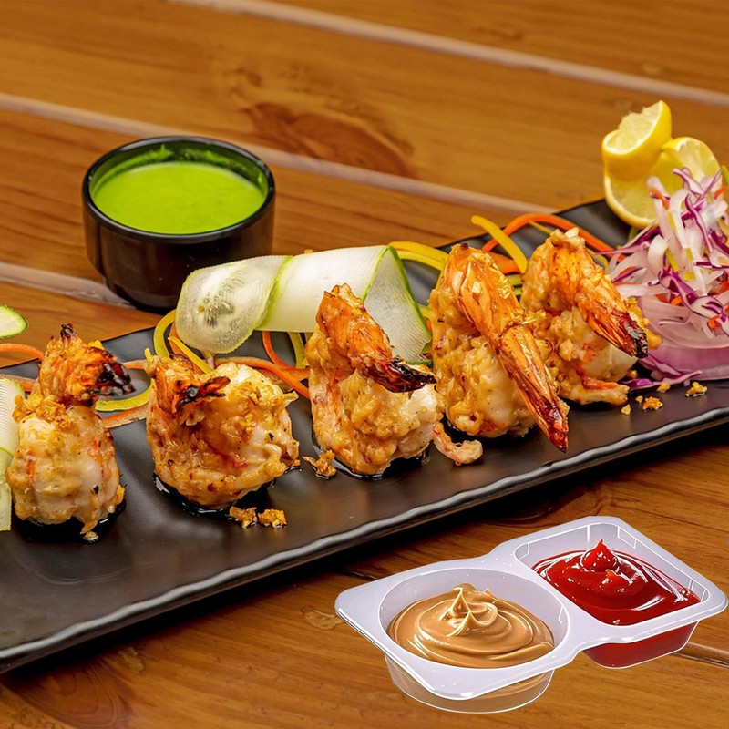 • Convenient Separation These sauce containers feature two compartments that are perfect for separating two different sauces. You can store ketchup, mustard or other sauces in one container when you need different dips.