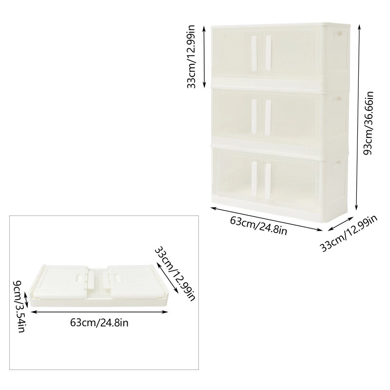 Storage Assistant: 3 separate cabinets with a capacity of around 13.21 Gal each and a top panel for storage provide plenty of storage space to meet your various storage needs such as cosmetics, stationery, postcards, etc., allowing your items to be placed in order.