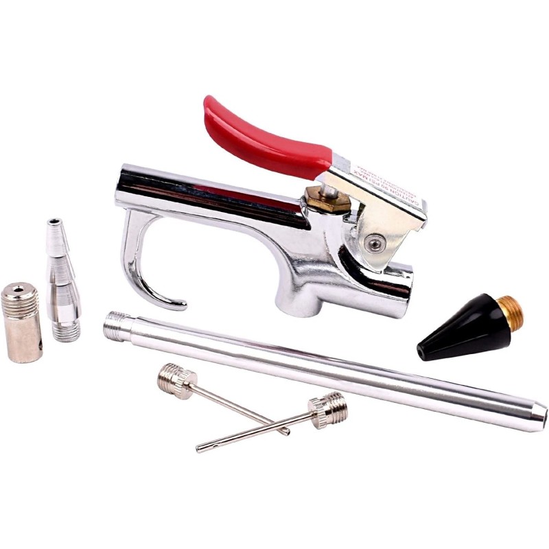 - This air blow gun kit includes non-marring soft rubber tip, metal tip, inflating needle, 4.7 inch long interchangeable tubes.