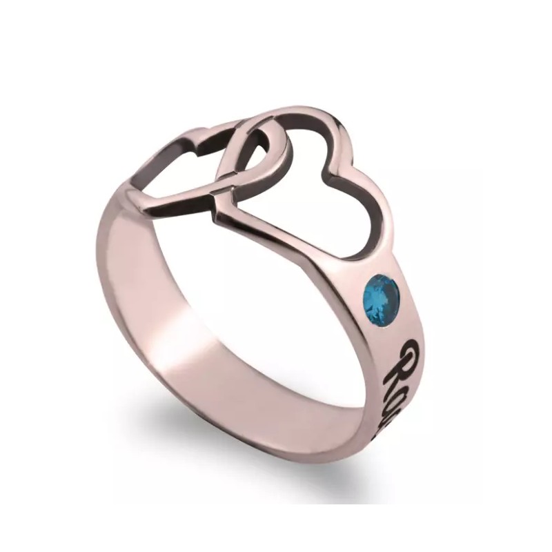 N/A BIRTHSTONE RING WITH ENGRAVED NAMES: STERLING SILVER, 24K GOLD, ROSE GOLD
