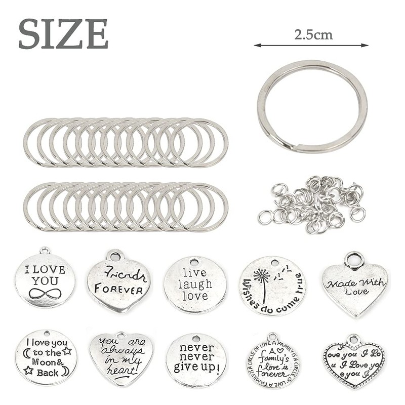 - 【Value Pack】- You will receive 29 pieces of Inspirational Words Charms in different styles(Round, Love, Square, Five-pointed star), 200pcs Open Jump Rings(8mm), 30pcs Key Rings(25mm). Enough quantity to meet your different needs to DIY different styles crafts