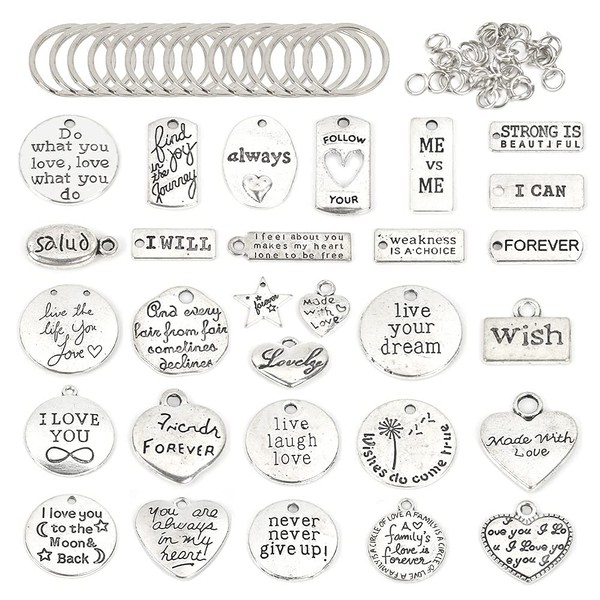 - 【Good Quality】- Our motivational charms set made of quality alloy, not fade or break easily, long wearing time; Key rings and Open Jump Rings are not easy to deform, sturdy enough. Good workmanship ensures smooth and shining surface, make your crafts always look like new