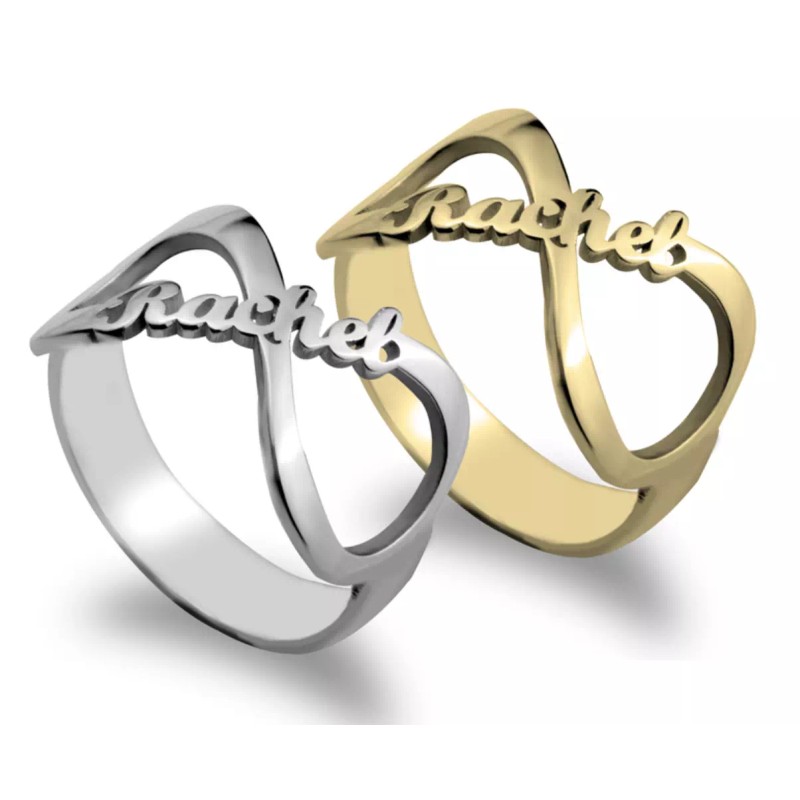 N/A INFINITY NAME RING: STERLING SILVER, 24K GOLD PLATING, ROSE GOLD PLATING