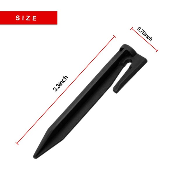 - Fijación fiable: el color negro es claro y visible en muchas ocasiones. La gente no ignorará la existencia de las clavijas de plástico para el cable de límite. Cada clavija de plástico tiene un anclaje que fijará cualquier cosa que necesites con el suelo. Las estacas para césped y jardín pueden evitar eficazmente que tus toallas de playa y mantas de picnic vuelen en condiciones de viento