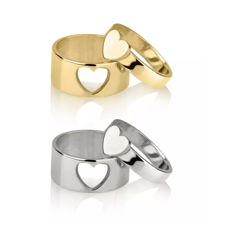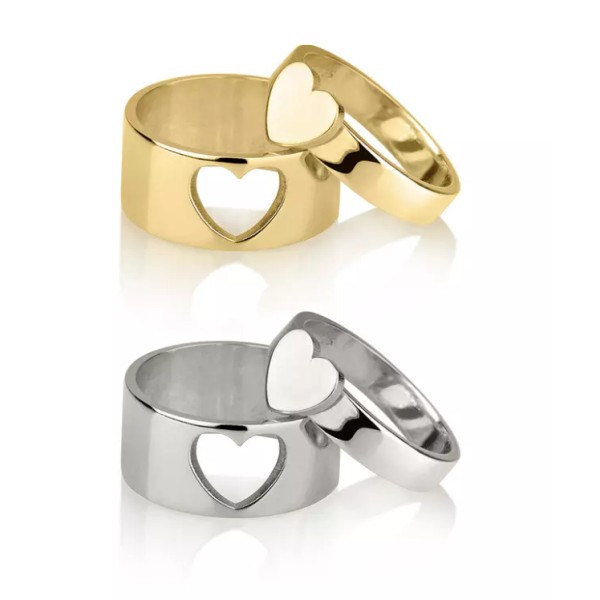 N/A MATCHING COUPLE HEART RINGS: STERLING SILVER, 24K GOLD GP, ROSE GOLD