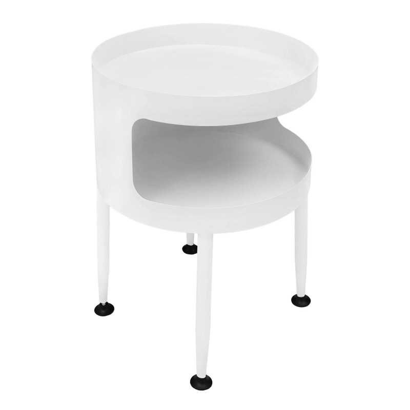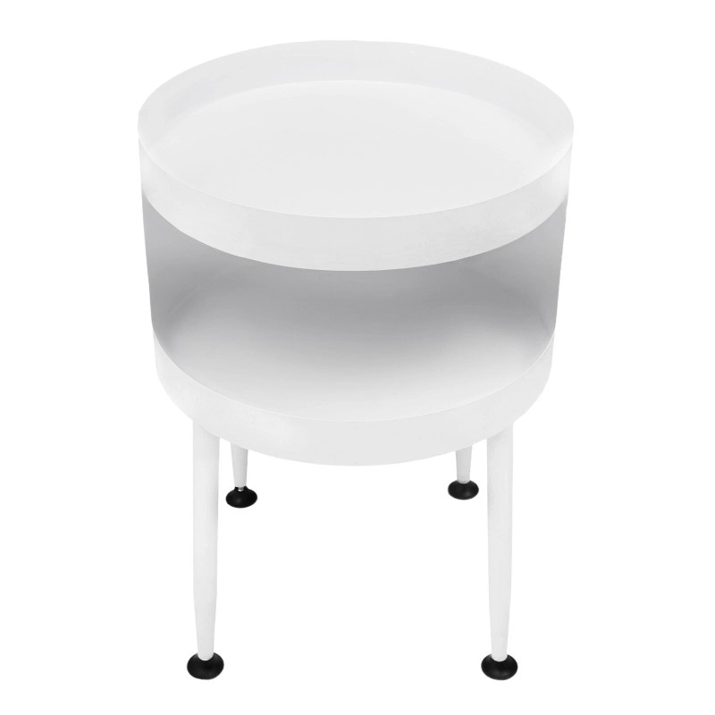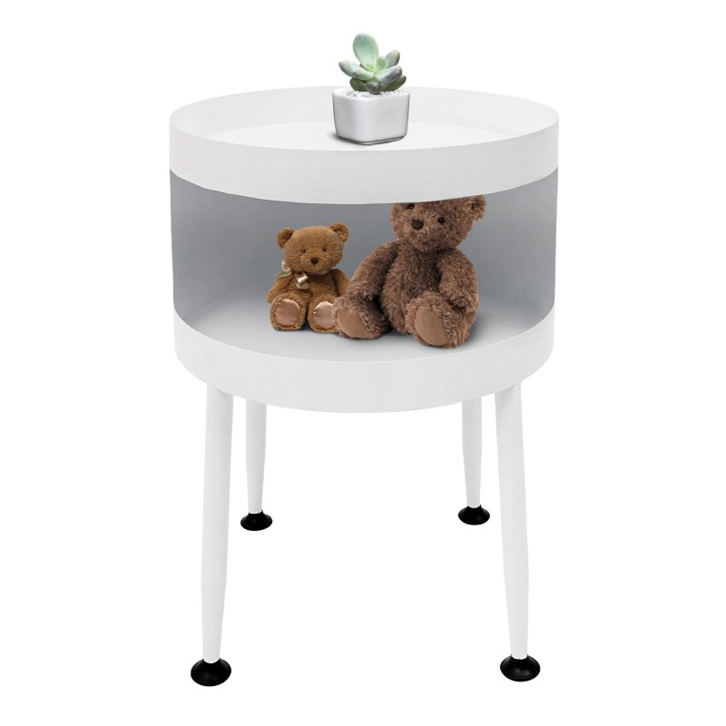 N/A White Bedside Table Round Table w/ Open Storage Modern Side Table w/ 4 Foot Pads