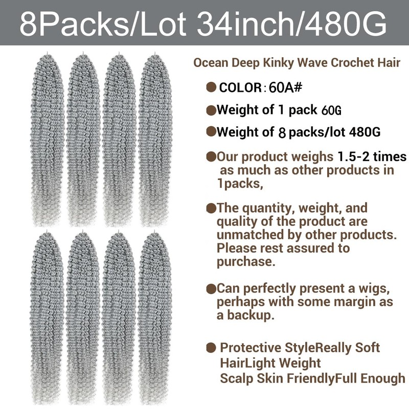 - Advantages:Ocean Kinky Deep Wave Crochet Hair Is No Smell,No Tangle,No Shedding,No Itch.Nature Texture,Easy To Install,Easy To Shape And Easy To Wash And Care,It Is Light And Comfortable.Natural Looking Feels As Human Hair.Professional, Fashionable.