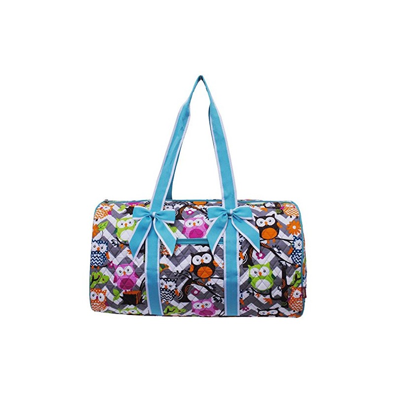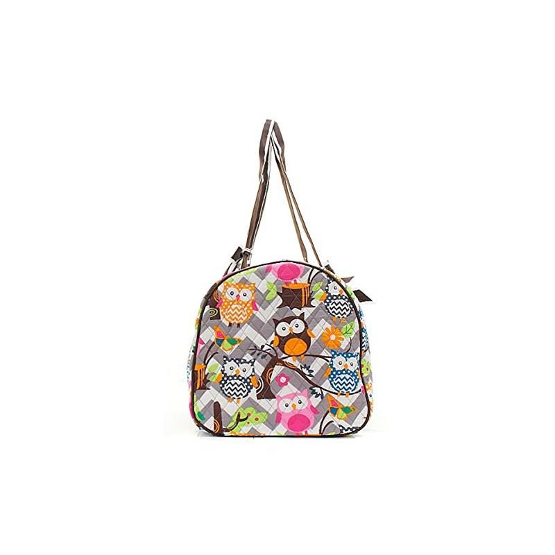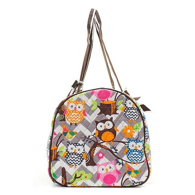 N. Gil Owl Chevron Large Quilted Duffel Bag - Grey with Blue Trim
