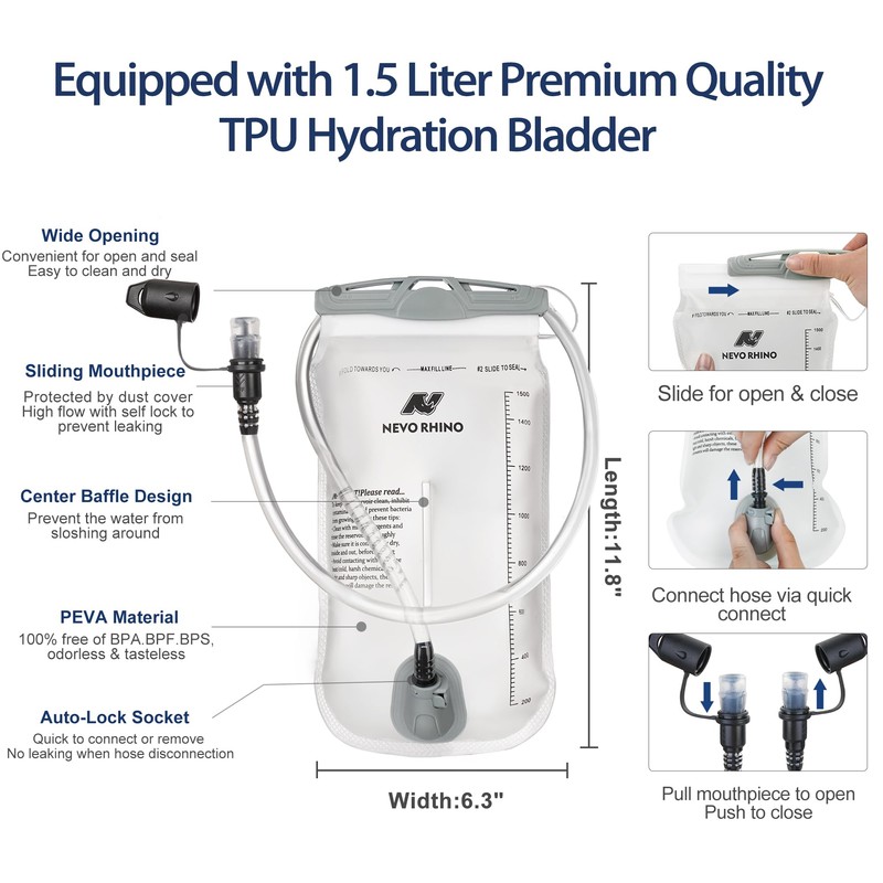 - After sale: N NEVO RHINO Hiking Backpack Water Bladder Vest. If you have any questions about this hydration running vest, please reach out to us, we will reply within 24 hrs