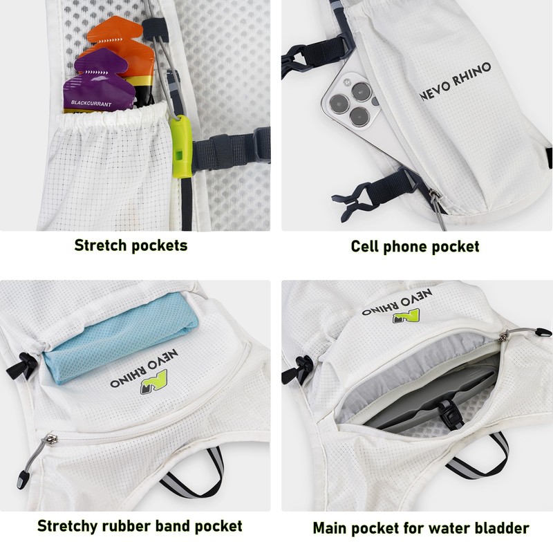 Lightweight Design: The N NEVO RHINO lightweight running vest is designed specifically for sports enthusiasts. It allows you to stay comfortable during long runs or rides and you can barely feel its existence.