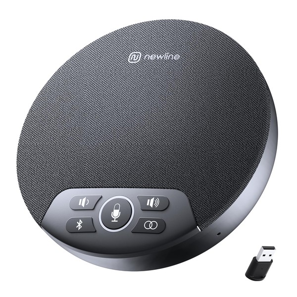 N newline Conference Speaker and Microphone, 4 AI Mics 360° Voice Pickup, Plug & Play, Bluetooth Speakerphone w/dongle, Wireless Daisy Chaining, Noise Reduction, for Meeting, Home Office, NewPie 91