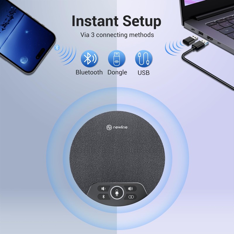 - Instant Setup: With USB, Bluetooth, and dongle support, this conference speaker can connect to various office equipment, entertainment devices, and platforms, enabling seamless wireless or wired connectivity