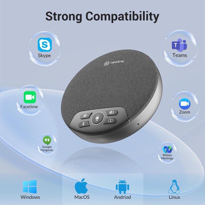 - Expandable and Versatile: Link two NewPie 91 units without daisy chain for extended coverage, supporting up to 20 attendees. Compatible with popular conferencing platforms like Zoom, Skype for Business, and WebEx