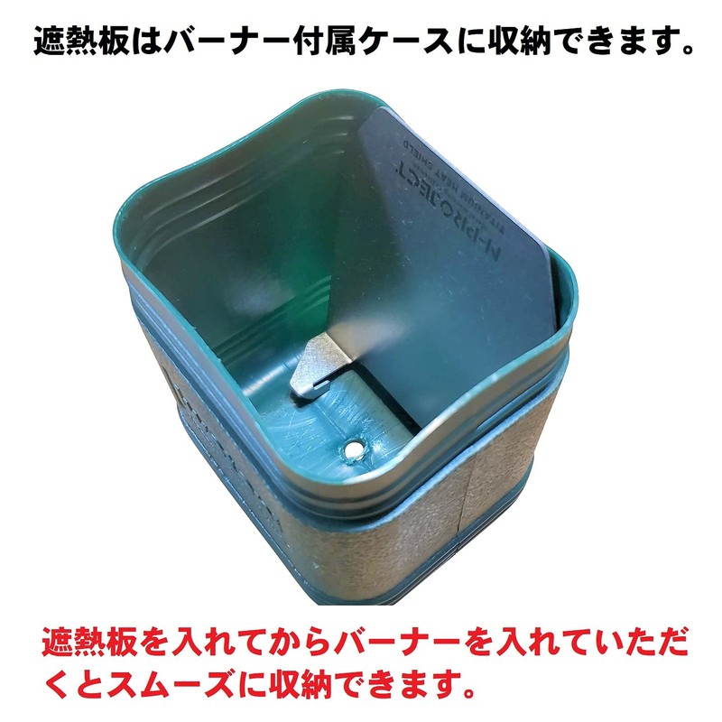 - The special insert shape secures the heat shielding plate firmly and can be stored in the included burner case after use. It can also be attached to the burner frame, so it can be installed regardless of the burner type (new or old). (Registered Design Application) Details are also featured on YouTube N-project heat insulation plates