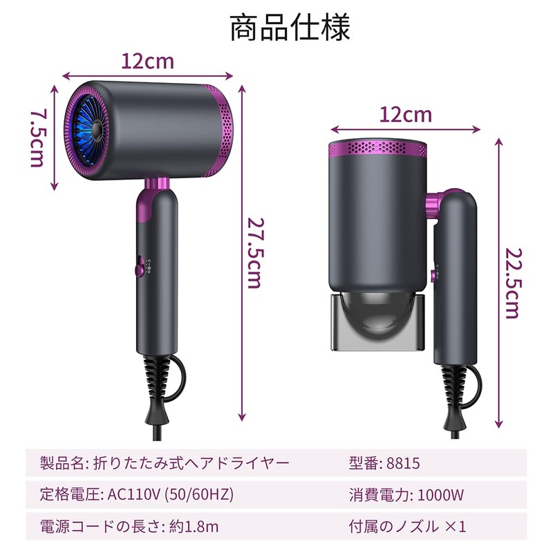 - 【ノズル付きで自由なスタイリング】風を一点に集中させるスタイリングノズルを付属。ボリュームアップや内巻きセットも簡単に決まり、サロン級の仕上がりを自宅で実現。1.8mの電源コードで取り回しやすく、使い勝手も抜群です。
