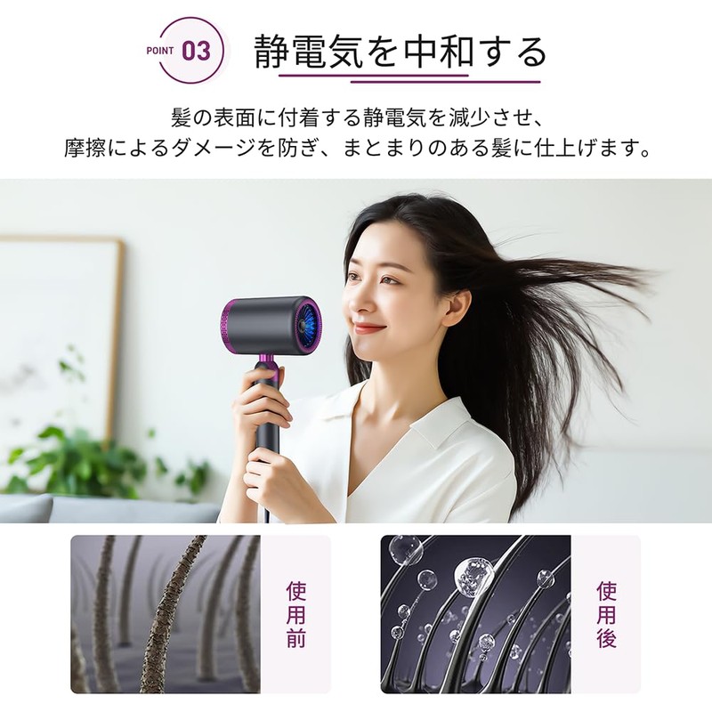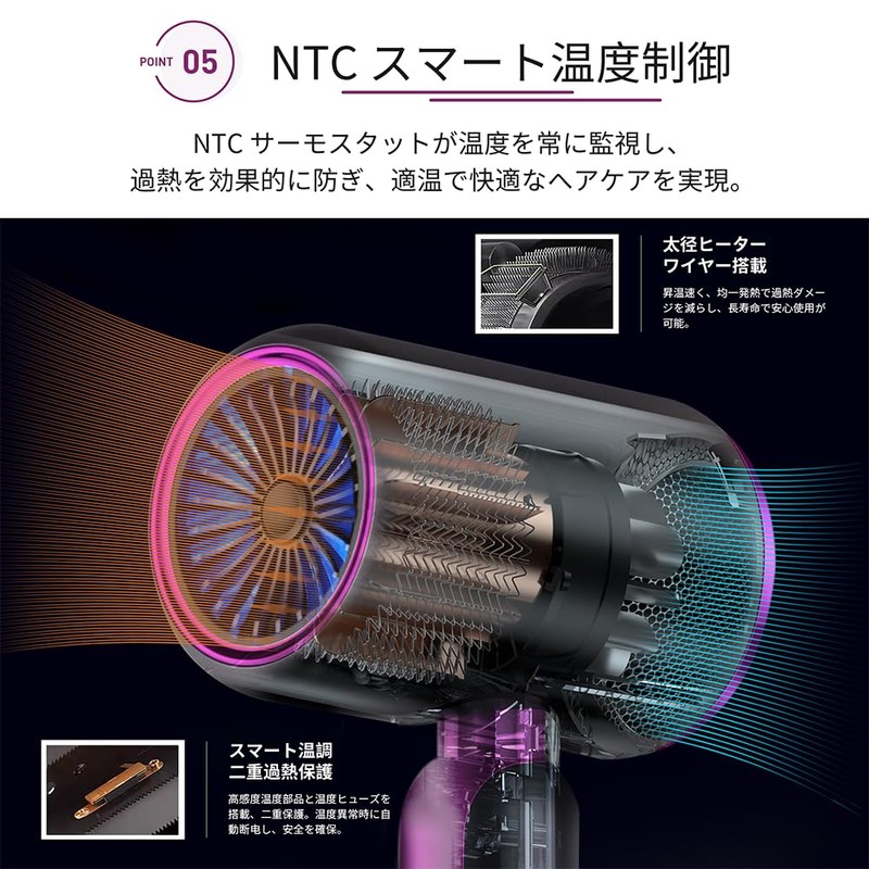 - 【過熱防止機能で安心設計】内蔵の温度制御センサーにより、一定温度を超えると自動的に運転を停止。お子様の使用や長時間使用時にも安心して使える、安全設計のドライヤーです。