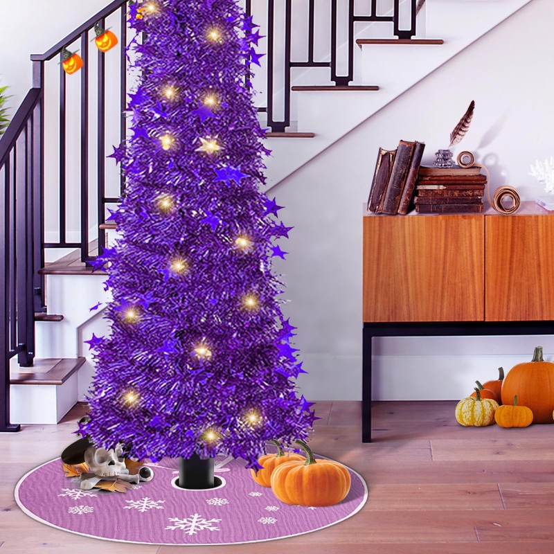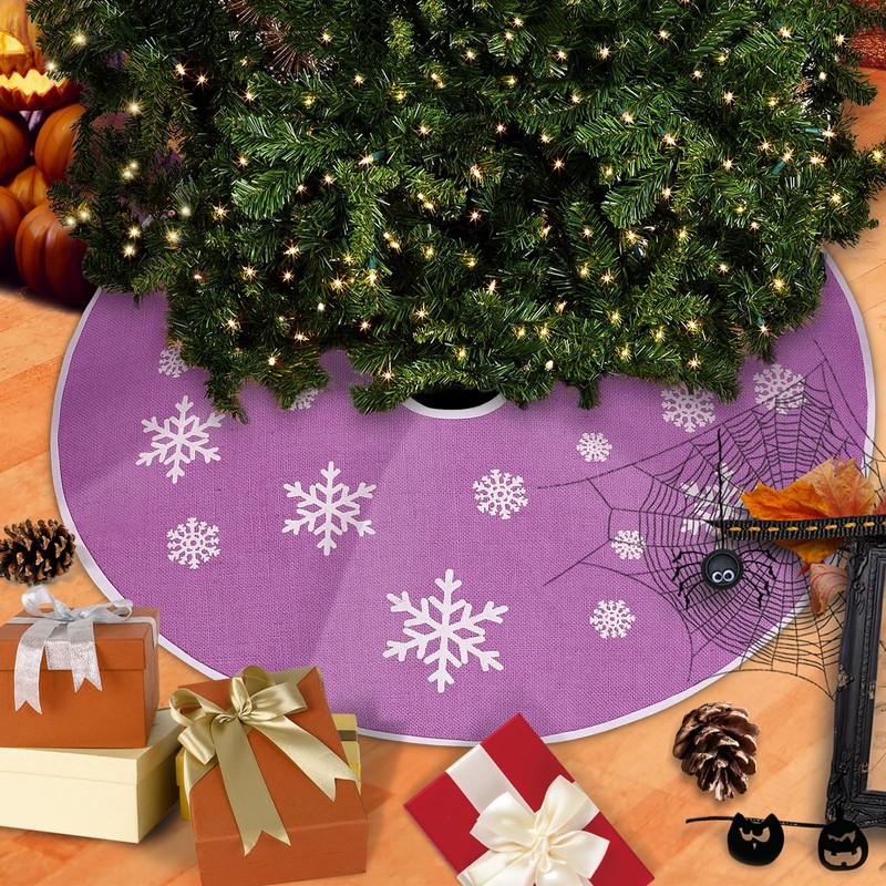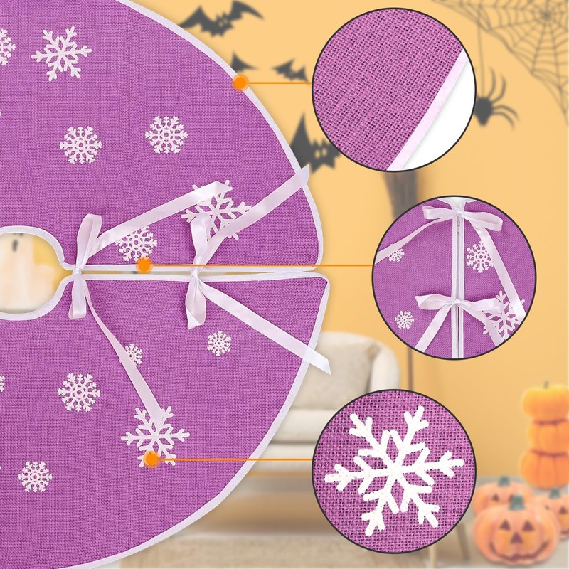 N&T NIETING Burlap Tree Skirt, 30 Inch Christmas Tree Skirt with White Snowflake Printed for Xmas Tree Holiday Party Decoration(Purple)