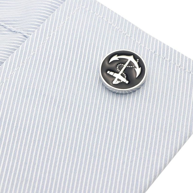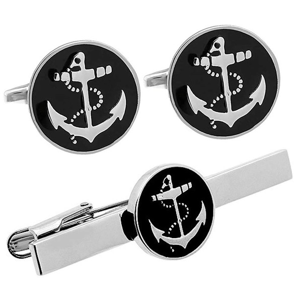 ブラック アンカー イカリ カフス & タイピン セット カフスボタン ネクタイピン n02265