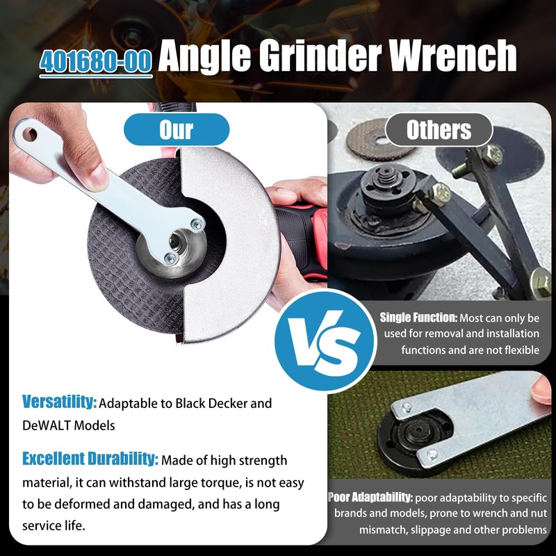 - Easy Installation and Removal: Engineered for simplicity, this wrench allows for effortless installation and removal, saving both time and money while ensuring compatibility with your angle grinder.