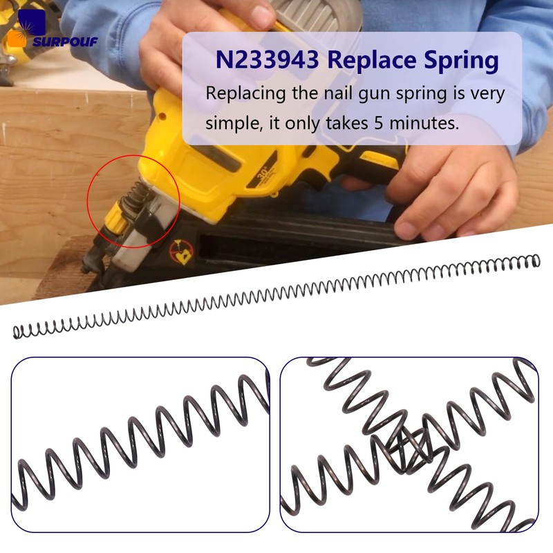 - To address the above concerns, we have specially launched the Nailer Springs N233943. After multiple tests, N233943 has a powerful elasticity function, which can achieve rapid rebound after compression, with full elasticity. At the same time, its load-bearing capacity is also very strong, which can withstand strong compression and control from a nail gun.