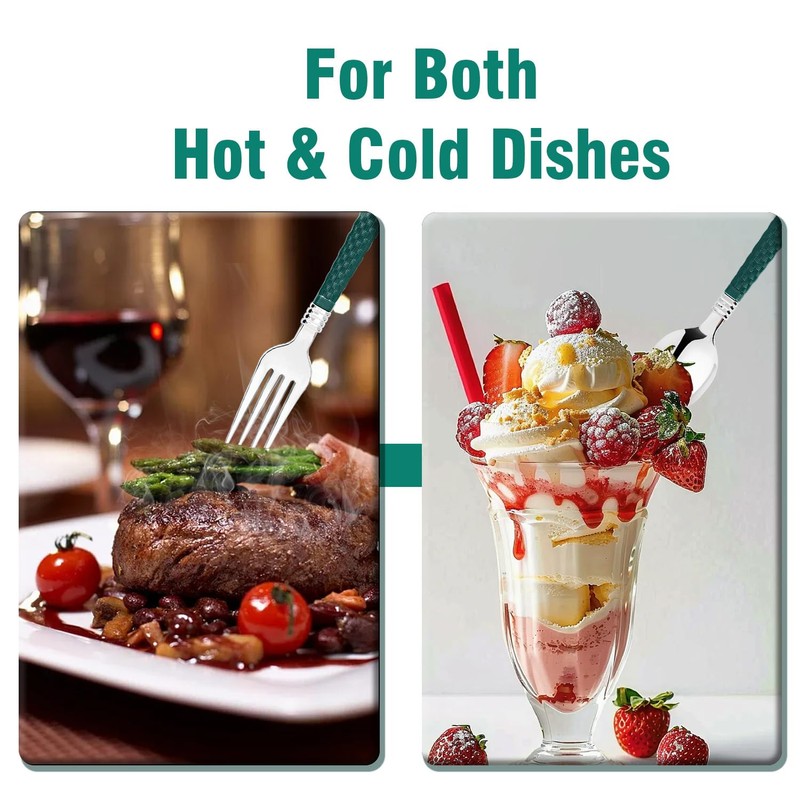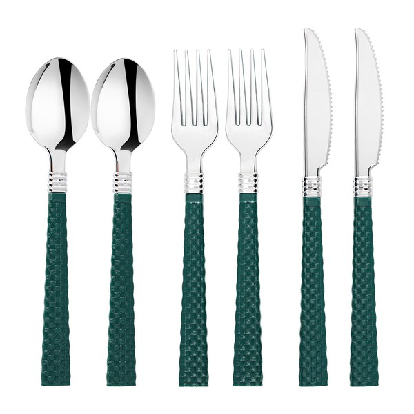 • ELEGANT WICKER-TEXTURED DESIGN: Green wicker-texture handles paired with a luxurious gold finish add sophistication and charm to any table setting, perfect for upscale events like weddings, parties, and celebrations