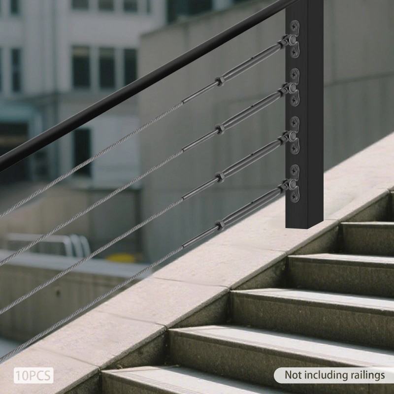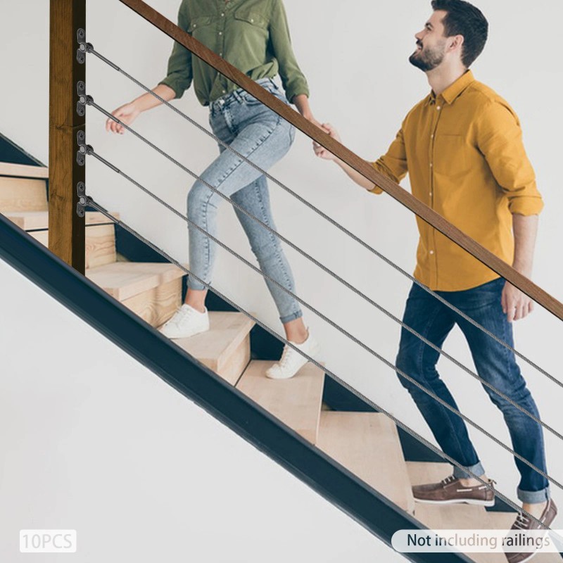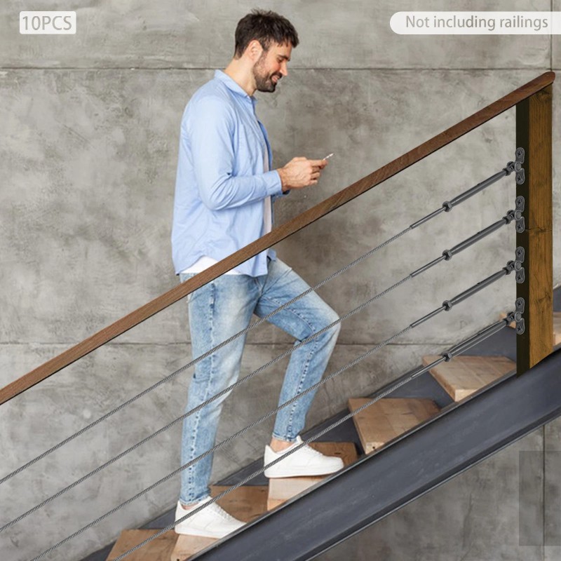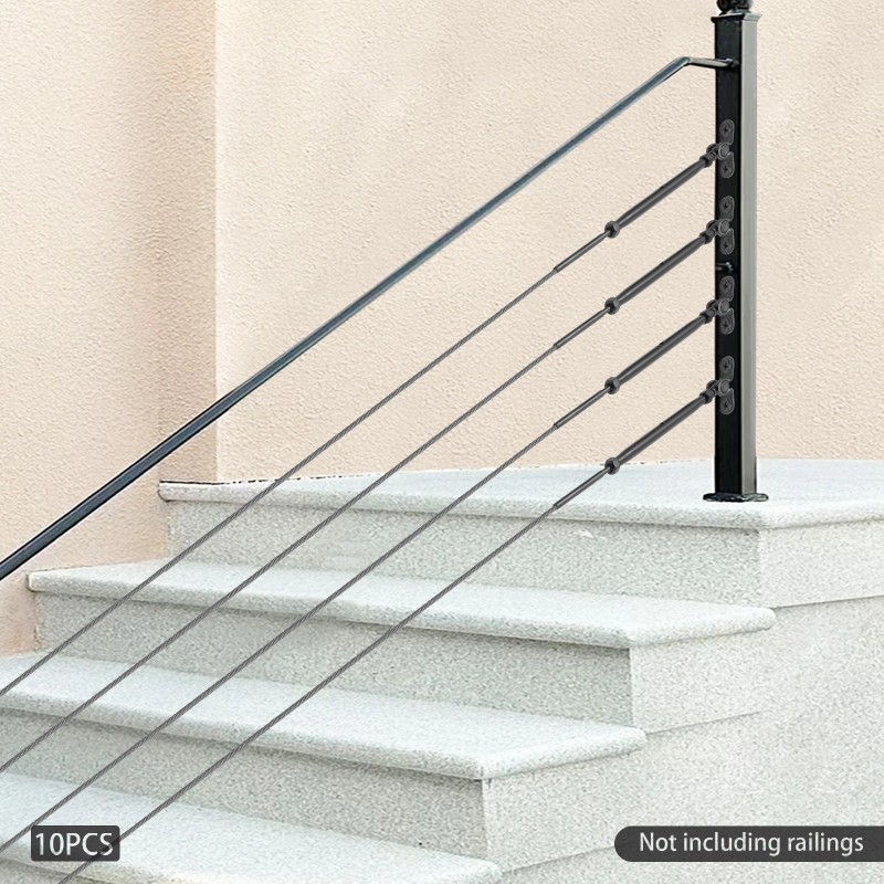 Economical and Practical: This kit includes 10 pairs of cable railing connectors. You can make up to 10 cable runs, which are enough to meet your needs. Moreover, installation accessories are also equipped, so you don't need to buy them separately, saving you time and money.