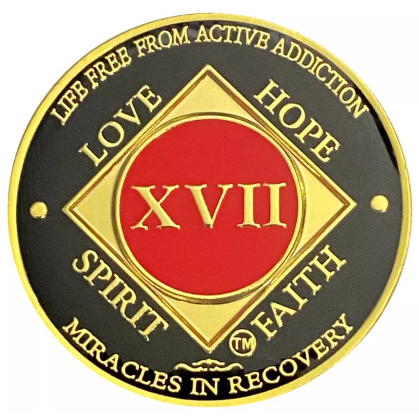 NA 17 Year Red, Gold Color Plated Coin, Narcotics Anonymous Medallion