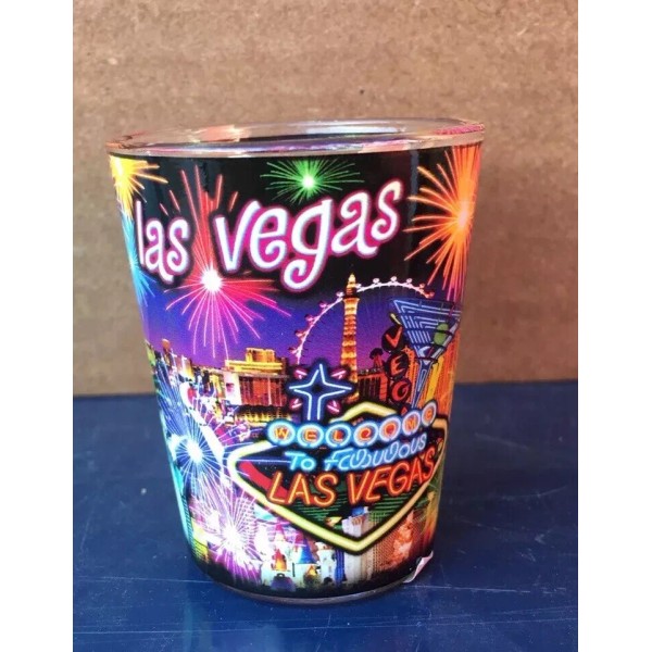 NA Las Vegas Strip PCF Souvenirs Fireworks Shot Glass Colorful Skyline